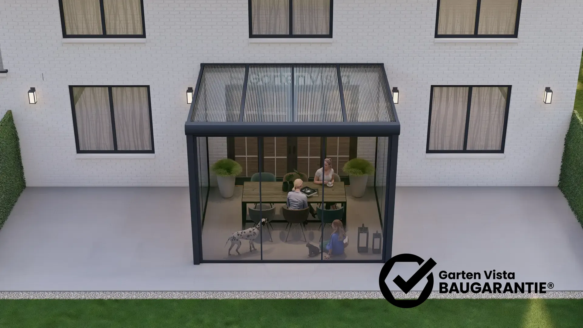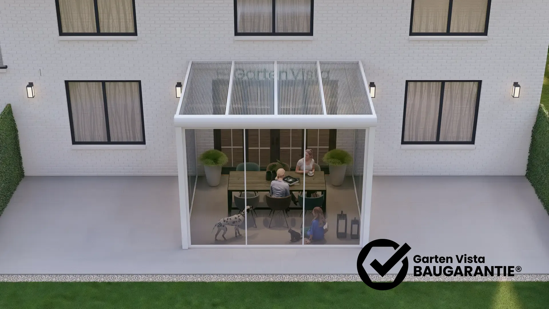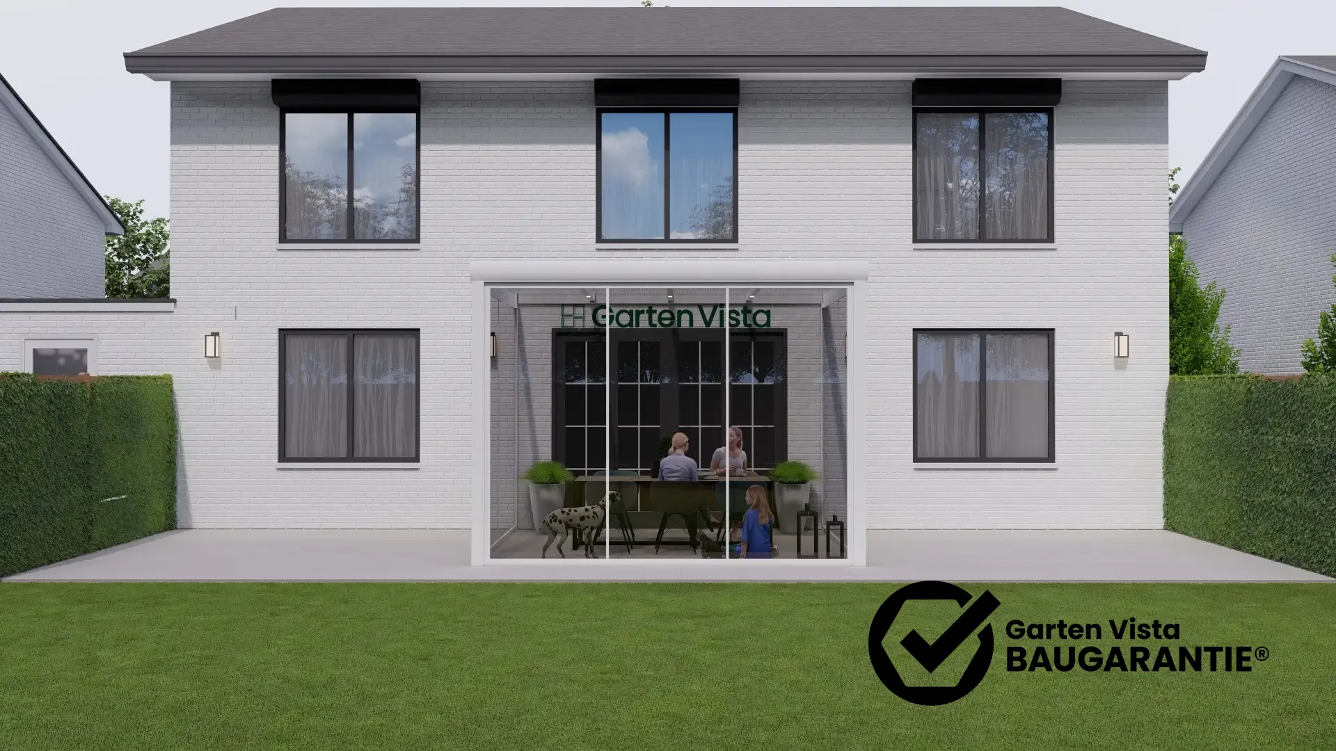 Verwandle deine Terrasse, Veranda oder deinen Balkon in einen hellen, geschützten Lieblingsplatz – mit dem 3-Schienen Glasschiebetür-System von Garten Vista.