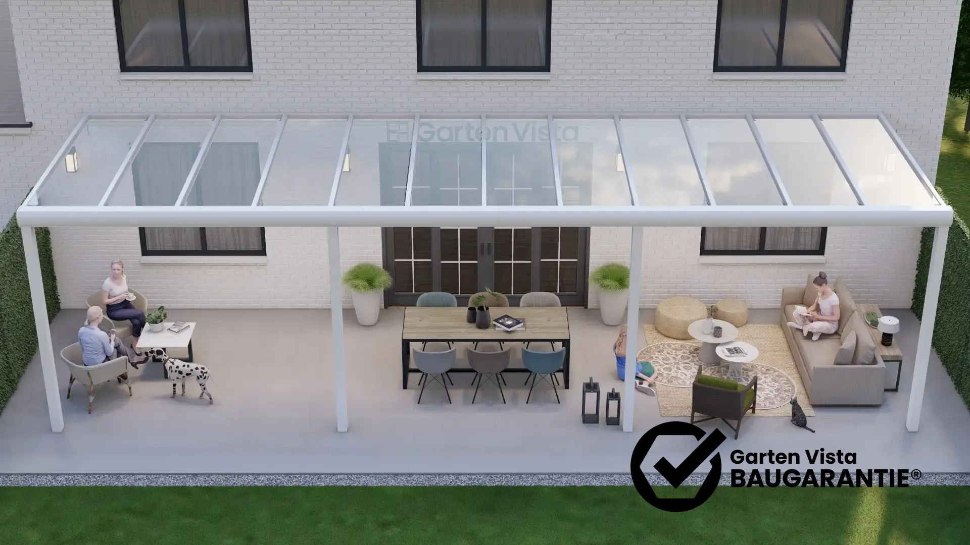 Glas-Überdachung – 11m x 4m – Matt-Weiß