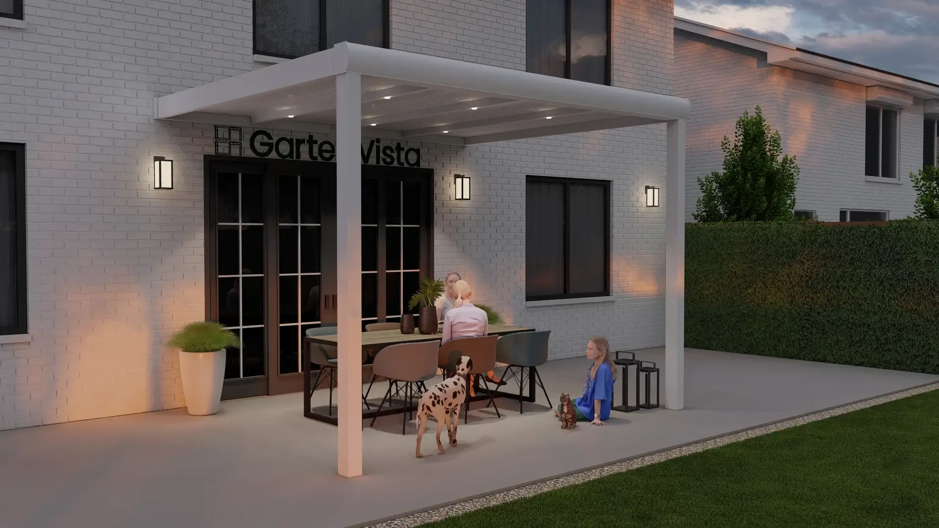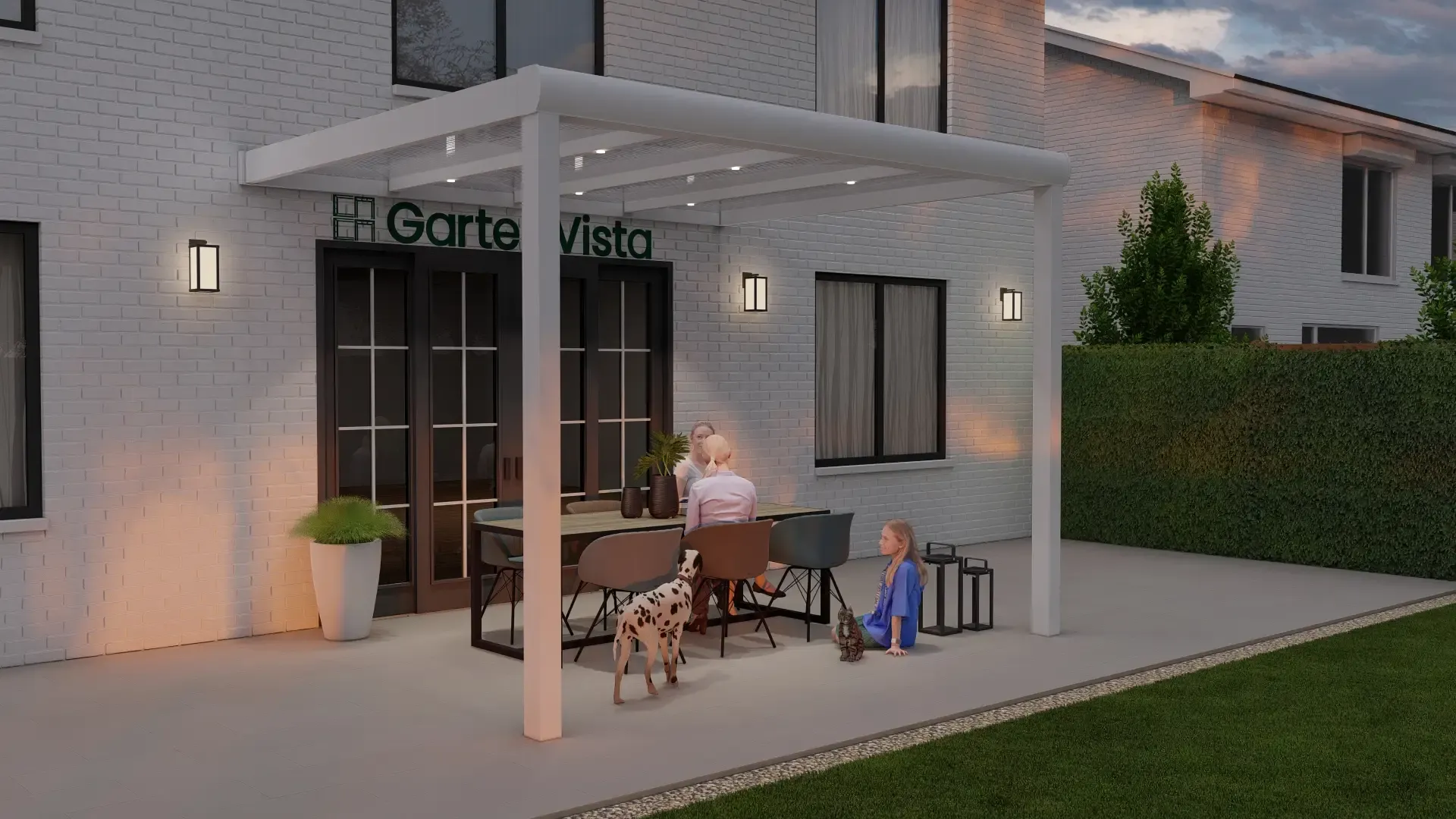 Dank eines clever konzipierten modularen Systems ist es möglich, die Überdachung später zu einem luxuriösen Gartenzimmer zu erweitern. Schließen Sie die Seite (teilweise) oder installieren Sie Glasschiebewände, damit Sie Ihren Garten auch an kühleren Tagen und Abenden herrlich genießen können. Und das alles Schritt für Schritt. Beginnen Sie mit einer Überdachung und enden Sie mit einem kompletten Gartenzimmer!Dieser Bausatz für eine Terrassenüberdachung zur Selbstmontage enthält u. a.: